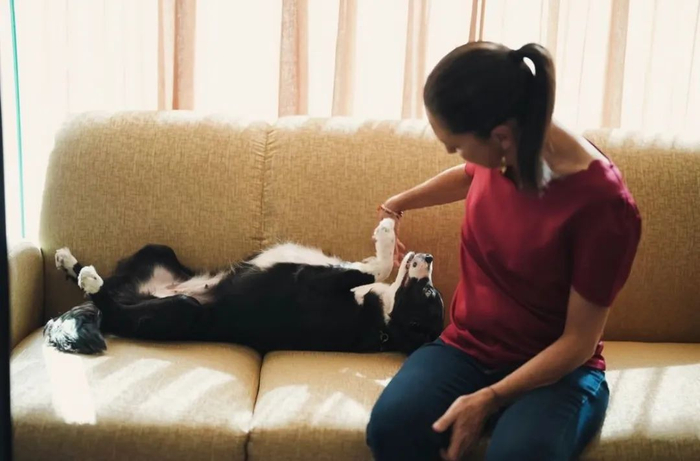 ·辛鲍姆在社交媒体上发布自己和猫猫狗狗玩耍的图片。