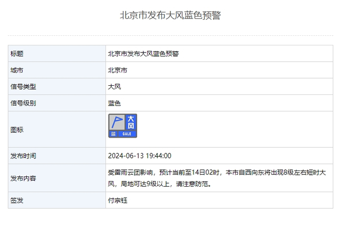 注意防范!北京市发布大风蓝色预警