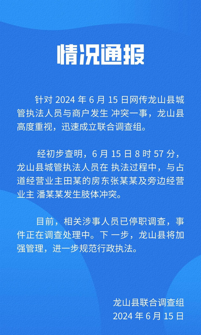 湖南龙山通报“城管与商户发生冲突”:涉事人员已停职调查