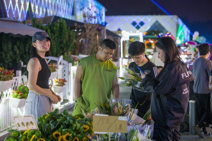 张海霞是花卉交易中心开业以来第一批入驻商户,平时只在店里做生意,夜市的开设,让她又多了一个室外摊位。“在店里接触到的顾客,都是带着很强的买花目的来的,但其实鲜花生意要做到老百姓的日常消费场景中,有时候,顾客的‘顺手买’也能为花商带来不少收益。”张海霞说,自从延长了服务时间,她的日销售额比之前增长了约30%。记者看到,在“花”夜市里,有十几家以售卖鲜花为主的摊位,他们带着向日葵、玫瑰、百合各色鲜花而来,为夜市增添了浓郁的花香和浪漫情调。