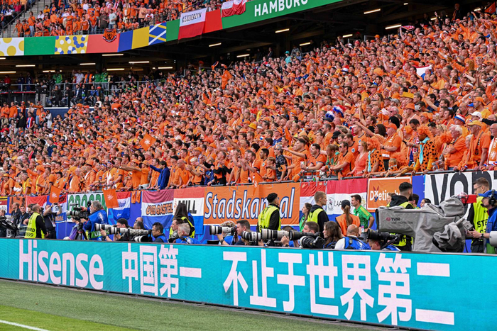 荷兰球迷把现场打造成了“橙色的海洋”。