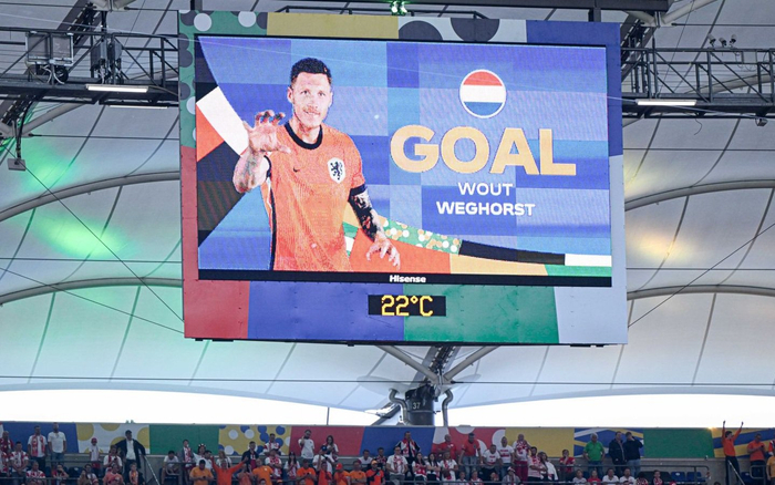 荷兰进球功臣韦霍斯特出现在现场LED屏上。