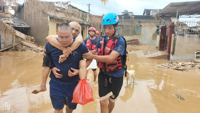 “洪水退去之后,地面满是较深的淤泥,车辆无法通行。接报以后,我们第一时间组织了8名队员,通过徒步探路的形式进入村庄。”陈润周说,在对方家里2楼的小阁楼找到老人以后,大家通过人力的方式,接力将他背到1公里外的安置点,随即医生赶来救援。