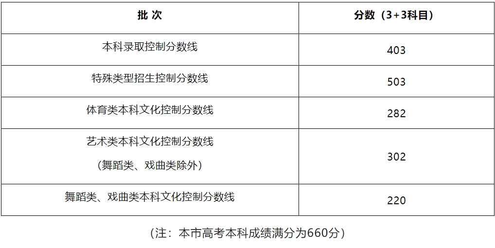 2024年上海市普通高等学校秋季招生本科各批次录取控制分数线经审定公布如下: