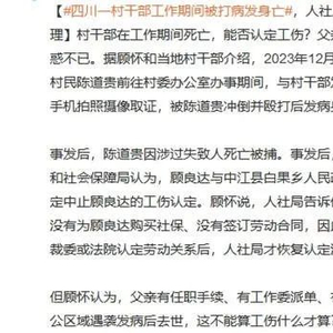 近期,2023年发生在四川的一则村干部工作期间因公死亡的案例,再次将这一议题推上舆论焦点。事情的起因是村民在村委会办事期间,与村干部发生了冲突,村党支部副书记就用手机摄像记录了其过程,但遭到了村民殴打,也因此发病身亡。