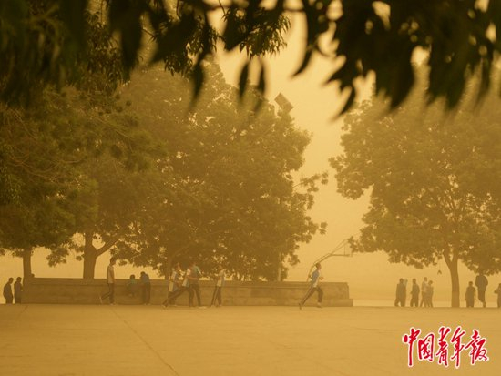 沙尘笼罩下的生活开始了。