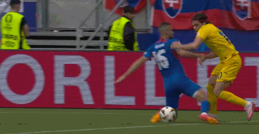 比赛开始,两队打法很相似也都很直接,在稳固防守的基础上,不在中场做过多纠缠,通过快速反击和边路突袭来制造威胁,可谓势均力敌。第11分钟,罗马尼亚队进攻造险。拉蒂乌在斯洛伐克队中路密集防守前和队友打出精妙配合,突入禁区后的拉蒂乌一脚兜射被门将奋力扑出,随后跟进的因尼斯·哈吉一脚补射打高。