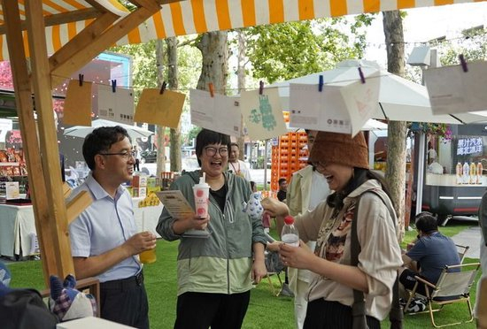 2024年6月17日,由商务部、北京市商务局、朝阳区八里庄街道等单位共同举办的“2024老字号嘉年华·心动老字号”系列消夏活动开幕。图为人们在消夏集市上休闲购物。新华社记者 李欣 摄