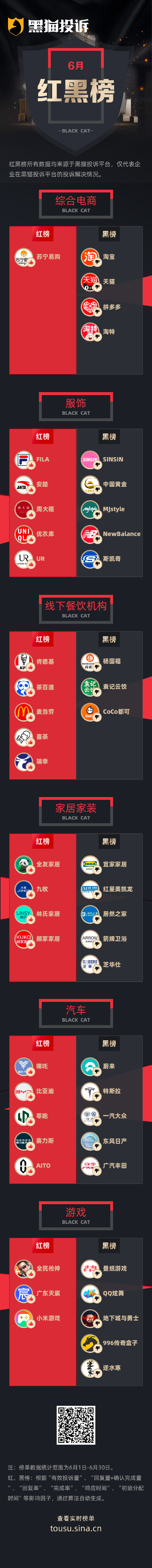 黑猫投诉6月行业榜单