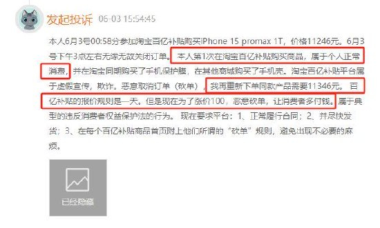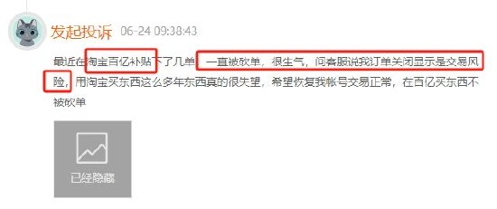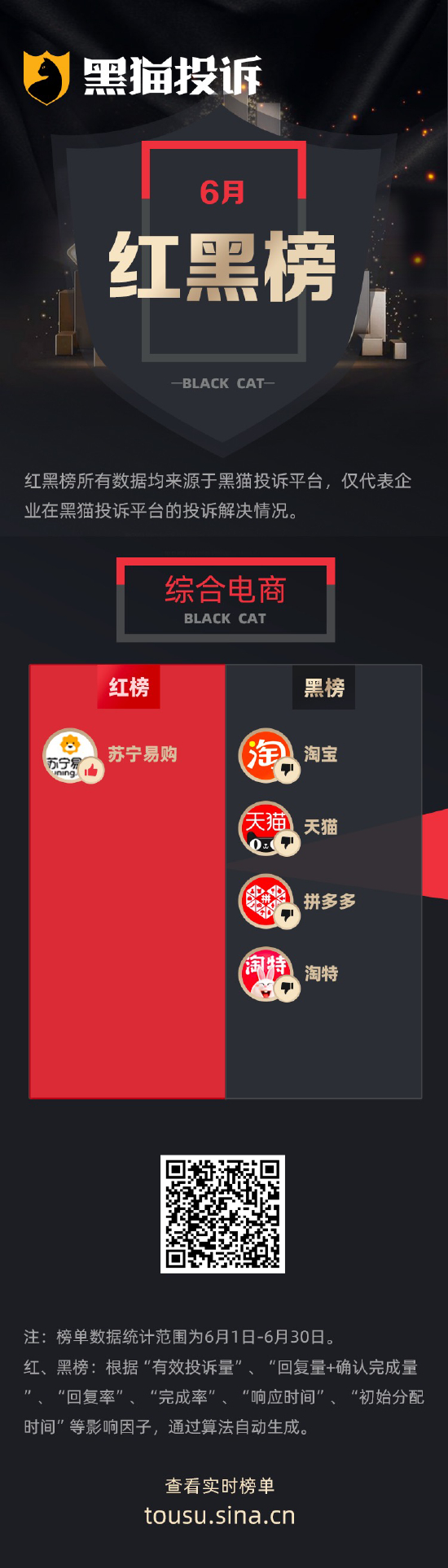 6月黑猫投诉综合电商领域红黑榜:淘宝百亿补贴无故砍单频现