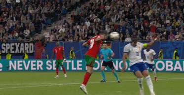 下半场开局,法国队持续压迫对手的防线,姆巴佩的远射被葡萄牙门将科斯塔稳稳抱住。随后,穆阿尼再度错失了禁区内的包抄射门机会。随后,葡萄牙队的角球机会,B费主罚的角球找到后点的B席,曼城中场的头球攻门直接被姆巴佩用头挡下。但因为这次封堵,本就在小组赛阶段遭遇鼻梁骨折的法国前锋再度感到不适。