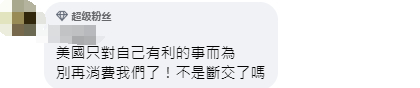 还有人批评称,“美国只对自己有利的事而为,别再消费我们了!不是断交了吗?”