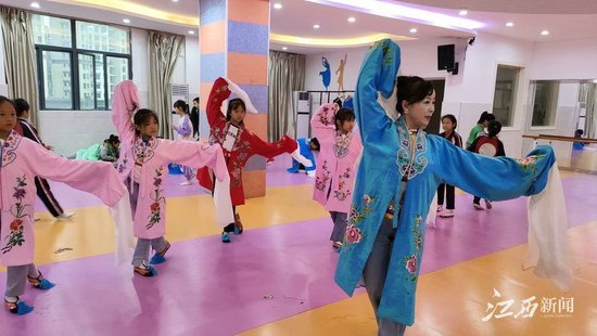 守正创新,让古老戏种更鲜活,让弋阳腔更出圈。这些年,弋阳腔艺术保护中心围绕“新”字做了很多尝试。2018年,中心将弋阳腔戏曲音乐元素和戏曲动作融入广场舞,改编成《好一个高腔》。2019年,《好一个高腔》在省委宣传部、省文化和旅游厅主办的“庆祝新中国成立70周年”全省广场舞展演活动中荣获一等奖。