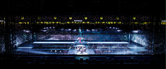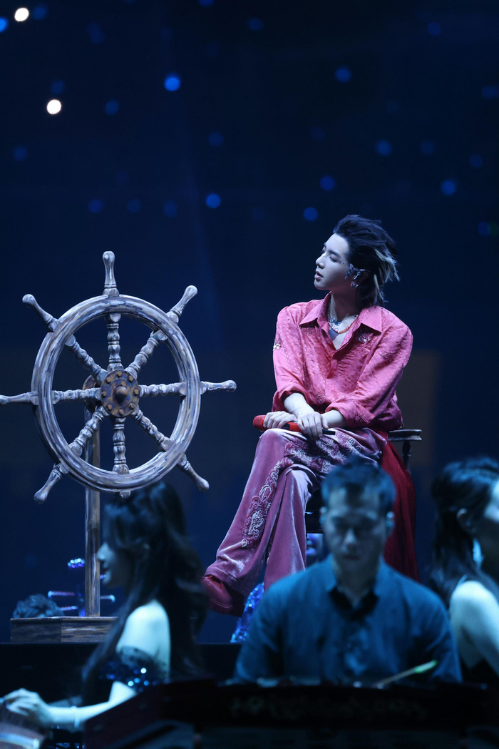 在《蜉蝣》这首歌响起时,珠帘屏首次亮相,缓缓降下,随着音律起伏,风吹动珠帘的声音落在现场观众的耳边。歌曲情绪递进时,珠帘屏也随之变化,传递出演唱者澎湃的心境。《卡西莫多的礼物》情绪达到高潮时,珠帘屏上燃动的火焰和闪电也让现场气氛升至顶峰。此外,现场还新增了较为先进的“追踪地屏”,采用了动态捕捉技术实时渲染人物走动的运动轨迹,与表演者之间实时“互动”,让现场观众感受到传统国风元素与现代媒介相互交融的新鲜体验。
