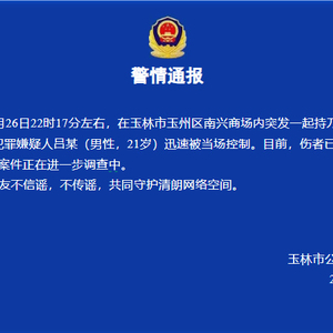 广西玉林一商场突发持刀伤人案致4人受伤 嫌疑人被当场控制