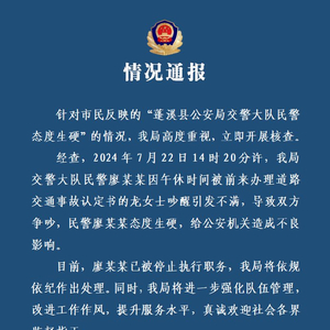 市民反映交警大队民警态度生硬 四川蓬溪警方通报