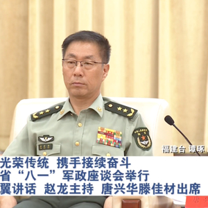 在山东省“八一”军政座谈会上,山东省委书记林武、省长周乃翔,北部战区陆军政治委员张晓,北部战区海军政治委员傅耀泉等座谈。