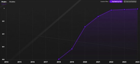 而郑钦文的成长可谓神速,她在今年进入女单世界前10的行列,而2021年的她仅仅排名第125。