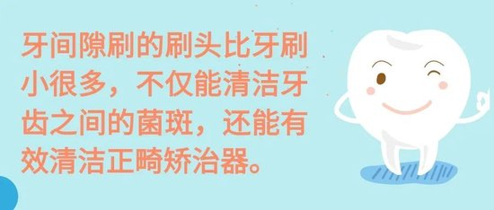 所以,正畸人群在刷牙后,还需要用牙间隙刷深入清洁托槽周围、弓丝下面这些细小的地方。