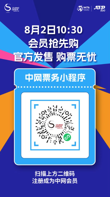 组委会宣布,8月8日8点8分,中网将面向全球开票,推出更多定制化票务产品。更多票务信息可通过中网票务微信小程序及支付宝中网小程序进行查询。
