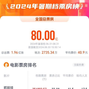 2024年暑期档票房破80亿,《抓娃娃》票房超《西虹市首富》