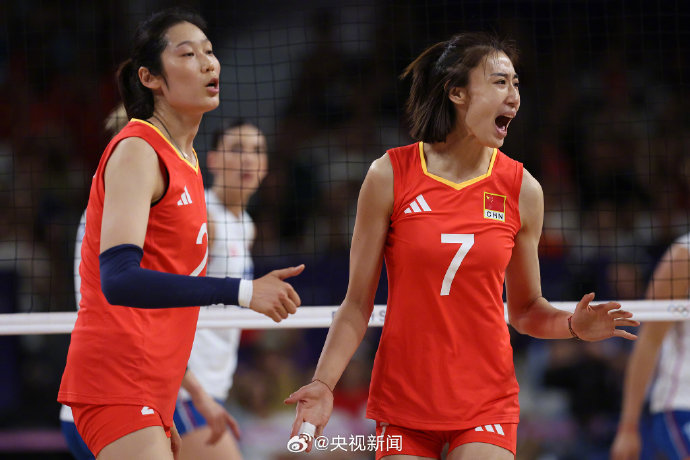 #中国女排三战三胜#[转起祝贺!#中国女排全胜出线#]巴黎奥运会排球女子小组赛,中国队战胜塞尔维亚队,三战全胜出线!此前两场小组赛上,中国女排分别战胜美国队和法国队。