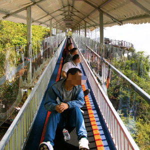8月10日晚,事故亲历者小文(化名)告诉新京报记者,今日下午,其与家人乘坐该景区“飞天魔毯”项目时发生意外。据小文介绍,事发时,她与其他游客从山脚下的项目入口出发,每人间隔约一米远的距离,并反坐在电动传送带上。此后,人随着传送带的坡度逐步升高。