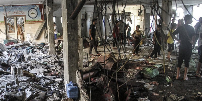 当地时间8月10日,以军空袭加沙学校造成超过100人死亡。视觉中国