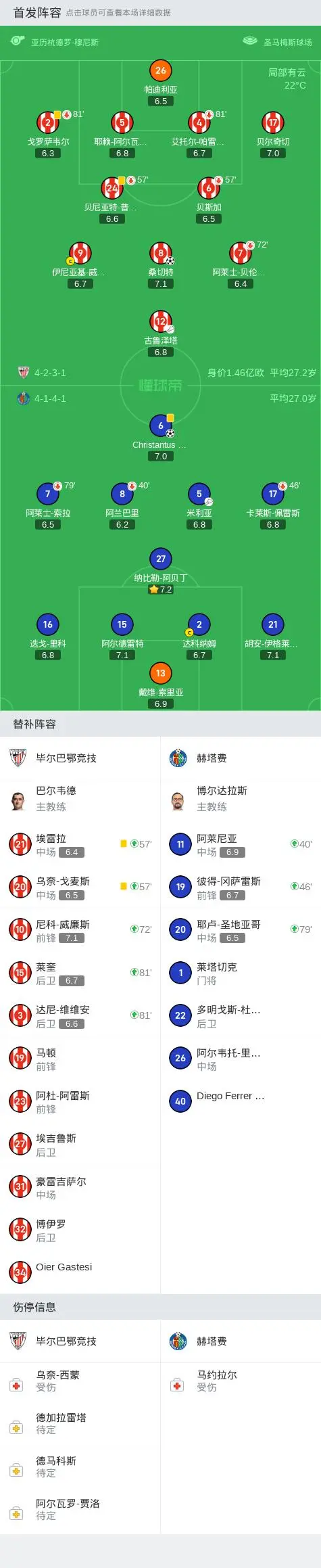 毕尔巴鄂竞技1-1赫塔费,桑切特揭幕战首球,乌切扳平