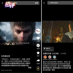8月20日,国产游戏《黑神话:悟空》正式发售,在多个平台登顶销量榜首,更在美国、新加坡、泰国、加拿大、巴西等12个国家霸榜。某平台当日全球同时在线人数突破220万,超越多个世界知名3A大作的记录,成为该平台历史同时在线玩家人数最多的单机游戏。国内各大社交媒体上,相关讨论也层出不穷,山西、重庆、浙江等地文旅账号纷纷上线“悟空”大片,邀请各位玩家来取景地“取经”。