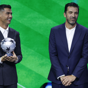 C罗(左)与布冯共同出席2024-2025赛季欧冠联赛抽签仪式。 图/IC Photo