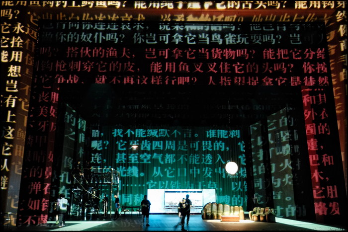 作为原创和改编者,莫言是《鳄鱼》文本的建设者和创作者,《鳄鱼》的舞台呈现在文本上几乎没有改编,是严格按照莫言的剧本来排演的。在王可然看来,莫言写得非常棒,他认为没有需要改的地方。但是,即便是同一部《鳄鱼》,舞台与剧本的节奏其实也是不一样的,在文本的阅读中,每一个读者都有个人的想象力空间,和文字表现力的“留白空间”不同,舞台不会在当时当刻给观众留下想象的时间,观众更多是在看完了之后再去回味、想象。看戏剧是享受地看,看文字的人是想象着看,这是两种想象力。”
