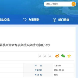 9月9日,湖北省体育局网站发布《关于湖北省事业单位参加第三十三届夏季奥运会专项奖励拟奖励对象的公示》。