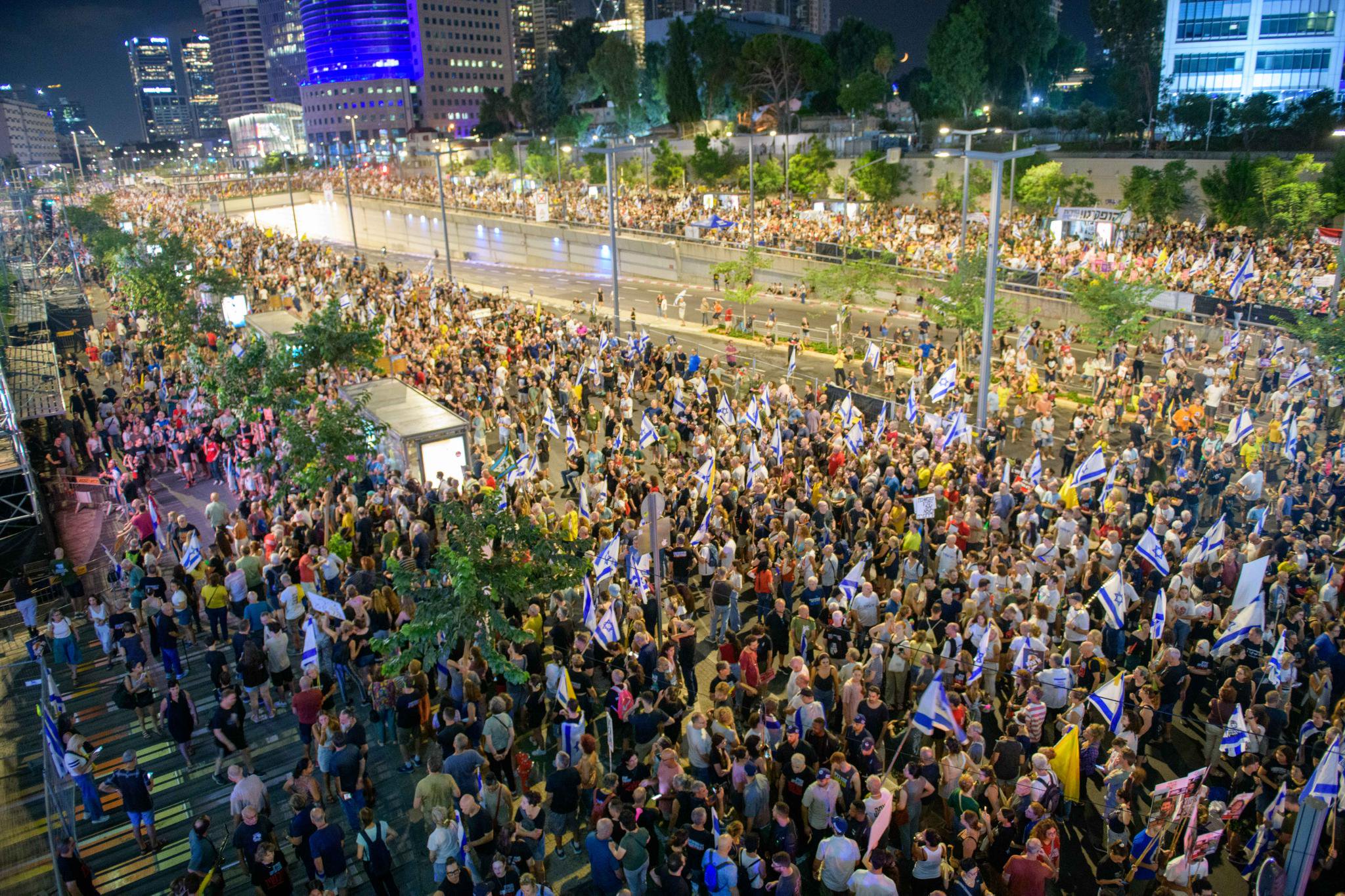 当天晚上,以色列全国范围内爆发了大规模的游行示威活动,数十万人走上街头,谴责总理内塔尼亚胡双手沾满鲜血,要求政府尽快和哈马斯(巴勒斯坦伊斯兰抵抗运动)达成停火协议,以解救所有剩余的人质。这场游行在9月7日达到了高潮,当天有近50万人走上了特拉维夫的街头,其他城镇总计有25万人参加了示威游行。