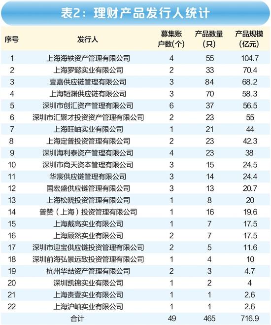 多位海银财富投资人向记者透露,海银财富所售的产品起投金额为30万元或100万元,年化收益率在7%—10%区间,产品资金用途大多用于给企业融资。过去几年,海银财富和五牛控股通过注册投资公司、伪金交所公司,编造虚假投资项目,设计包装了大量应收账款类、城投债类等投资理财项目,随后由海银财富在全国各地下设的170多家分公司进行销售,诱导了上万名投资人购买,合计募资金额上百亿元。众多投资人已经向警方和监管部门提交了举报材料,等待进一步调查结果和反馈。