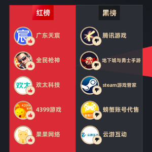 黑榜:腾讯公司、峰峻文化、微信、优酷、秀动、银河左岸、地下城与勇士手游、steam游戏管家、2024时笙音乐节西安站、腾讯成长守护平台