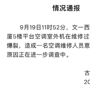 杭州西湖区:一大厦5楼空调外机维修时爆炸致一人死亡