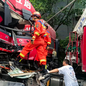 货车发生追尾事故司机被困,贵州仁怀消防救援队伍紧急救援