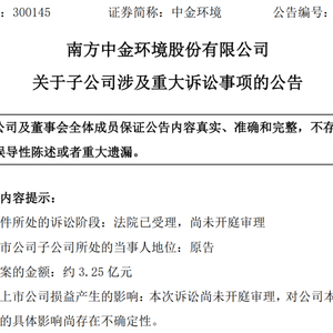中金环境称,本次诉讼尚未开庭审理,对公司本期利润或期后利润的具体影响尚存在不确定性。