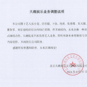 大碗娱乐文化传媒有限公司发布业务调整说明。
