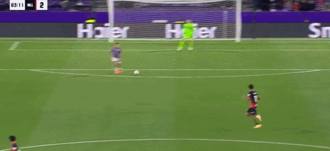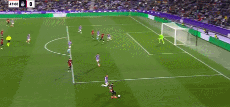 第90+4分钟,扳回一城,伊万-桑切斯兜射入死角,巴拉多利德1-2