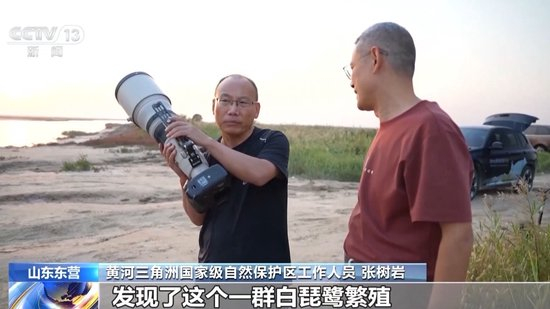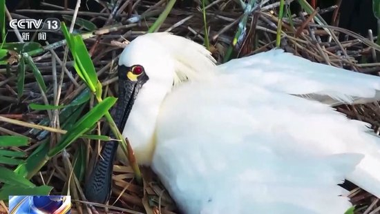 黄河三角洲国家级自然保护区工作人员 张树岩:有一天发现了一群白琵鹭繁殖,我想白琵鹭里边会不会有黑脸琵鹭繁殖呢?我就仔细找,终于找到了。