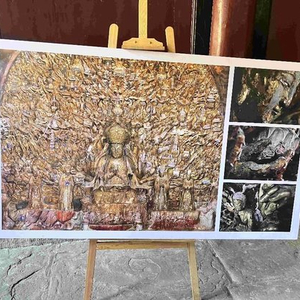 记者向卧佛以南看到,开凿于南宋的千手观音庄严肃穆,这是我国最大的集雕刻、贴金、彩绘于一体的摩崖石刻千手观音造像,和其他石刻一样,在气候等自然条件影响下,也曾“疾病缠身”,例如造像上的金箔开裂、剥落,彩绘的部分粉化。