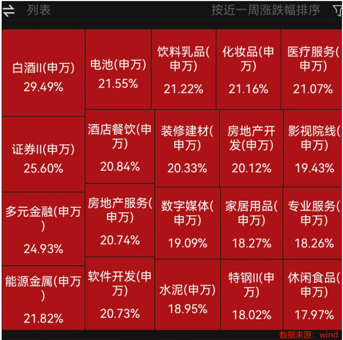 A股房地产相关板块一周累计涨幅超20%,大幅跑赢大盘。