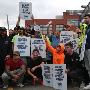 这只是美国港口大罢工的一个侧面。当天,从缅因州到得克萨斯州,美国36个港口的45000名码头工人举行罢工,要求涨薪,反对港口机械设备自动化。受影响的港口包括纽约、巴尔的摩和休斯敦,据美国全国制造商协会(NAM),超过四分之三的咖啡、茶、饮料和烈酒进口,以及大量的化肥、汽车和医疗/手术器械出口,都是通过美国东海岸和墨西哥湾沿岸的这些港口进行运输的。