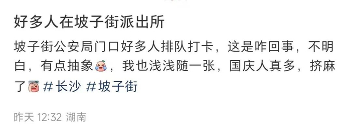很多来长沙的游客专程来这里打卡,派出所门口甚至排起了长长的队伍。