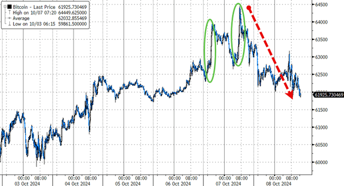 比特币回落至62000美元,抹去昨日涨幅