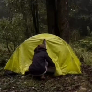 博主“苗疆陈朵朵”在哀牢山保护区扎帐篷。 图源:“苗疆陈朵朵”社交平台视频截图