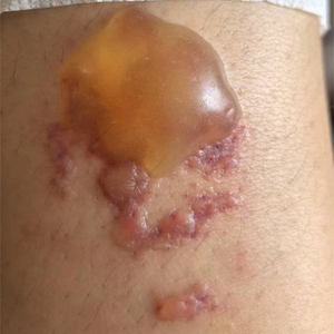 然而,第二天下午水泡却明显加大,周边皮肤也有溃烂迹象。感觉不对后,田女士在艾灸店工作人员陪同下,于7月14日下午前往天津市北辰医院看急诊,经医生检查确定为烧伤,并在医生帮助下挑破了水泡。遵照医嘱,田女士还需定期换药。田女士告诉红星新闻,首次到医院看急诊的费用大约花费了200元,该费用已由艾灸馆方面承担。