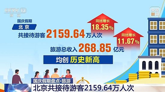 统计数据显示,国庆假期,北京共接待游客2159.64万人次,同比增长18.35%;旅游总收入268.85亿元,同比增长11.67%,均创历史新高。文博游、北京中轴线游、京郊游、微度假游、体育赛事游、特色商圈文化街区游、花灯游、网红潮玩打卡地游等受到游客青睐。
